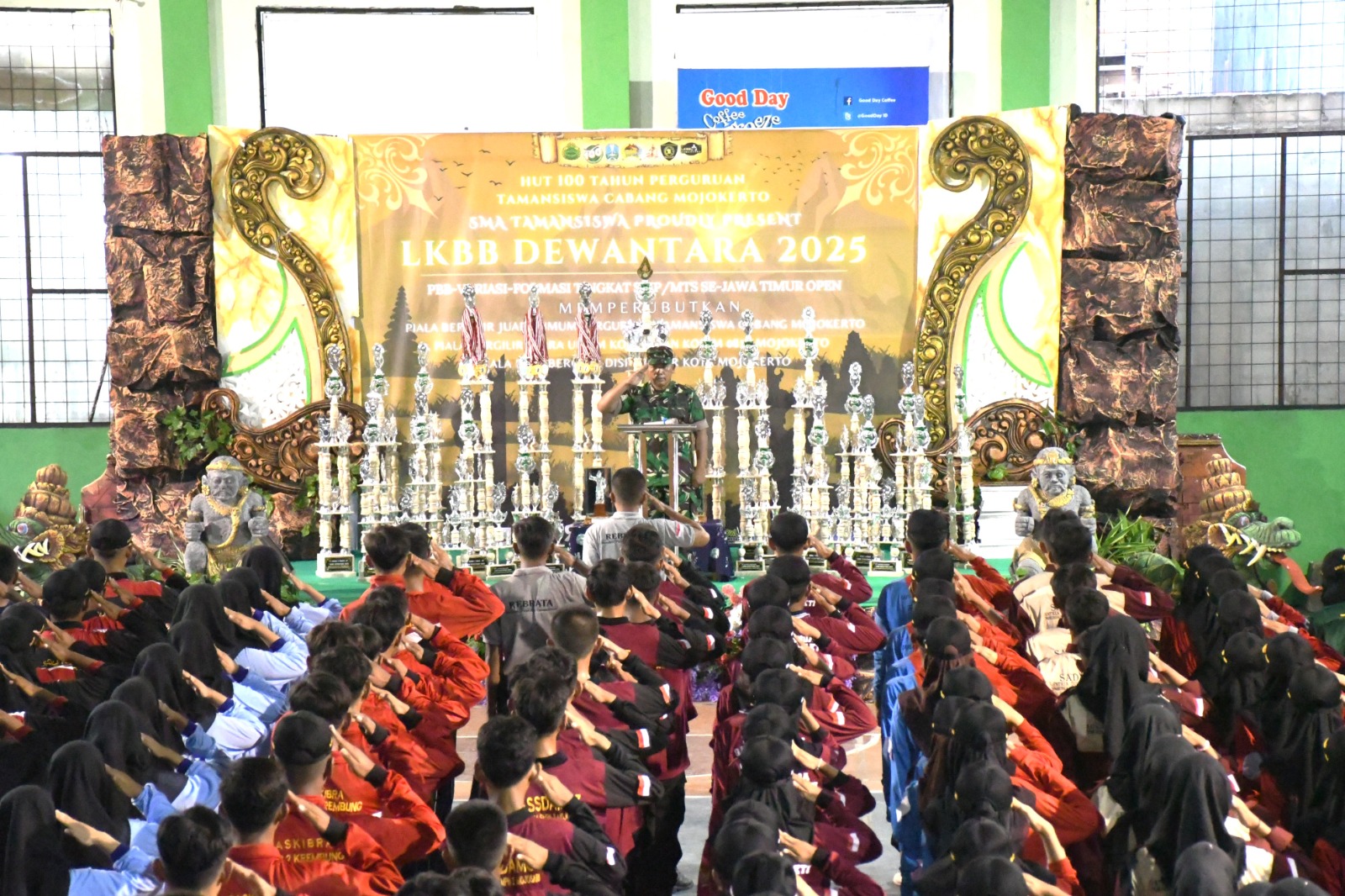 Banaspatiwatch.co.id || Mojokerto --Dalam rangka memperingati Hari Ulang Tahun ke-100 Perguruan Taman Siswa, Dandim 0815/Mojokerto melalui Pabungdim 0815 Mayor Inf Desto Jumeno, memimpin apel penutupan kegiatan Latihan Ketangkasan Baris-Berbaris (LKBB) Dewantara 2025 tingkat SMP di Indoor Perguruan Taman Siswa Sport Center, Jalan Taman Siswa Nomor 30, Kelurahan Purwotengah, Kecamatan Kranggan, Kota Mojokerto, Jawa Timur, Ahad (27/04/2025).